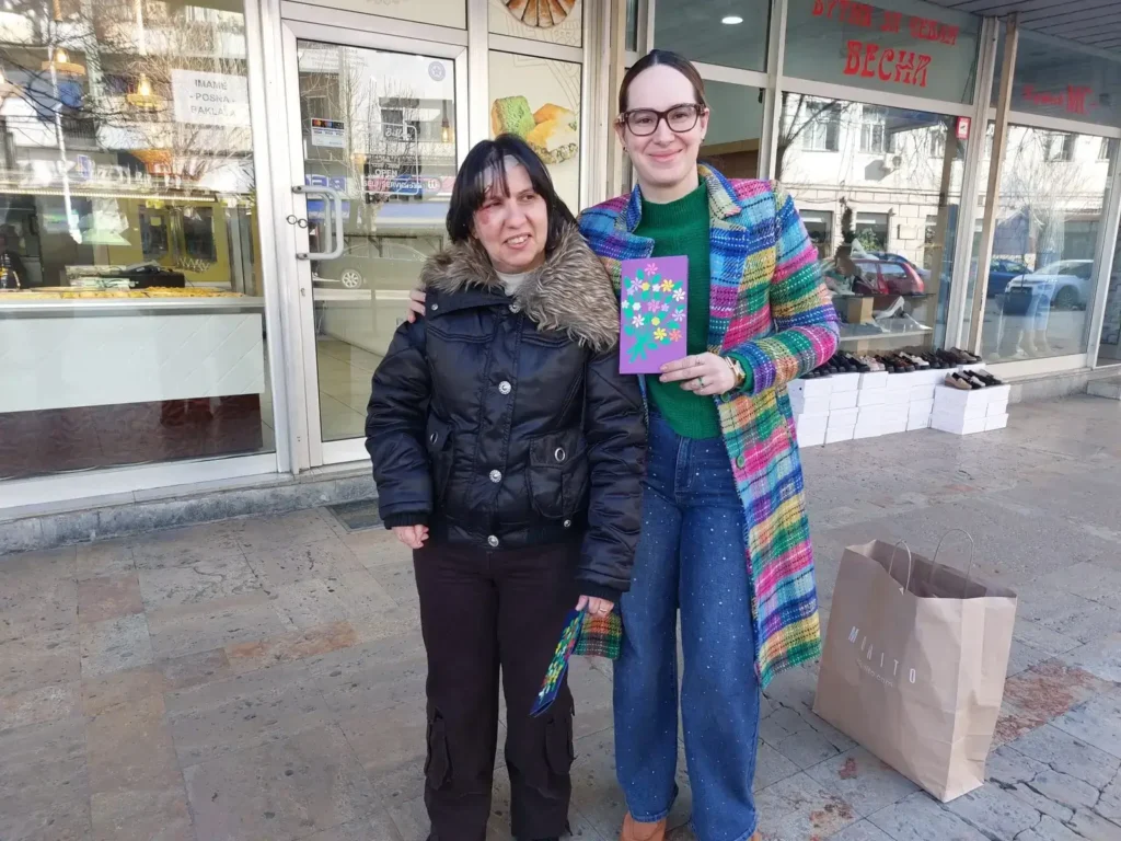 People with disabilities, who are members of the Association for Cerebral Palsy and Other Disabilities in Veles, were diligent and made 90 8 th of March greeting cards last week to honour International Women’s Day. Seeing their faces light up as they handed in the cards to women was pure joy. Daliborka Zlateva, the president of APCPOD-Veles, explained more about who helped them and the goal of this initiative.
