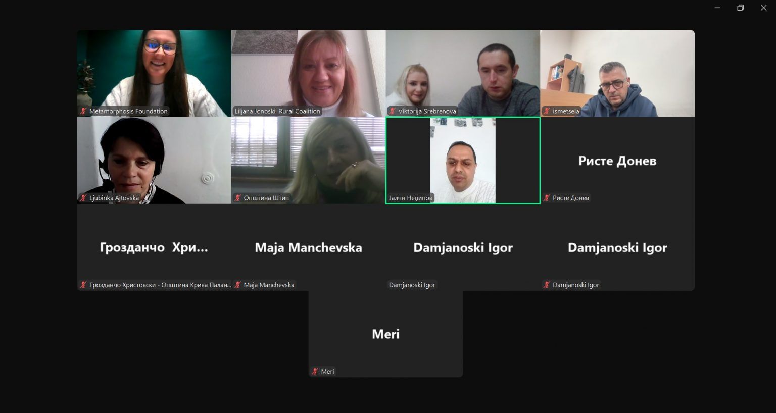 Рурална коалиција, со поддршка од Фондацијата за интернет и општество Метаморфозис и Центарот за социјални иновации Блинк 42-21, во јануари ја организираше Првата заедничка менторска средба за зајакнување на капацитетите на општините за зголемена транспарентност и отчетност што е дел од проектот „Дигитална трансформација на локално ниво – Вклучена заедница за отпорност на корупција“. Оваа иницијатива, која вклучува осум општини од осум региони, има за цел да го зајакне капацитетот на јавните службеници и да го унапреди нивниот труд за подобрување на транспарентноста и отчетноста. Менторската поддршка, е клучна за развојот на алатката мЗаедница, која ќе помогне во отворањето на општините кон граѓаните и зајакнување на нивната отчетност и ќе се спроведува во текот на јануари и февруари 2025 година.
