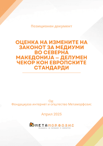 Северна Македонија е во процес на реформи на своето медиумско законодавство, со цел да се усогласи со стандардите на Европската унија (ЕУ). Фондацијата Метаморфозис ја поздравува иницијативата на Владата на Република Северна Македонија за усогласување на националното медиумско законодавство со европските стандарди, особено во контекст на Поглавјето 23, Правосудство и темелни права и Европскиот закон за слобода на медиумите (ЕМФА). Иако предложените измени на Законот за медиуми може да претстават чекор во вистинската насока со проширување на регулаторната рамка кон онлајн медиумите, за нив се јавува загриженост дека само делумно ги решаваат системските прашања во медиумската сфера и не се во согласност со одредбите на ЕМФА. Поради тоа, повикуваме на сеопфатен, инклузивен процес на реформи насочен кон усвојување на нов Закон за медиуми кој целосно ги одразува европските норми и обезбедува заштита на слободата на медиумите, уредничката независност и правата на новинарите.