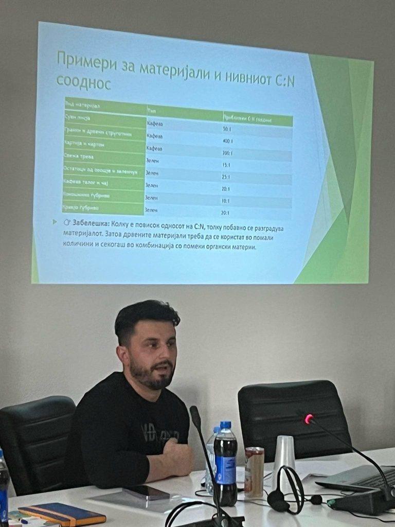 Во вториот дел, беше објаснета науката зад процесот на компостирање — фазите на распаѓање, улогата на микроорганизмите, и балансот помеѓу „кафеави“ и „зелени“ материјали.