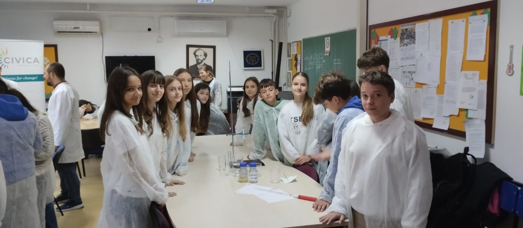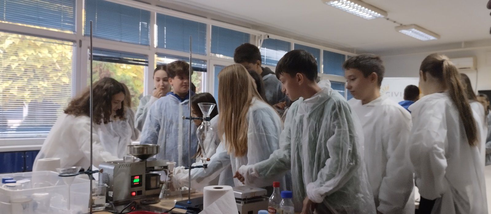 На 16.10.2025 во рамки на настаните на отворено со караванот за демонстрирање на експерименти во училиштата насловен како „Работилници за повторна употреба и пренамена на био-отпад за ученици”, го поминавме денот со вредните ученици од ООУ “Димо Хаџи Димов”. Младите истражувачи правеа експерименти за пренамена на био отпад поттикнати од живата дискусија и насоките на нашите Експерти.