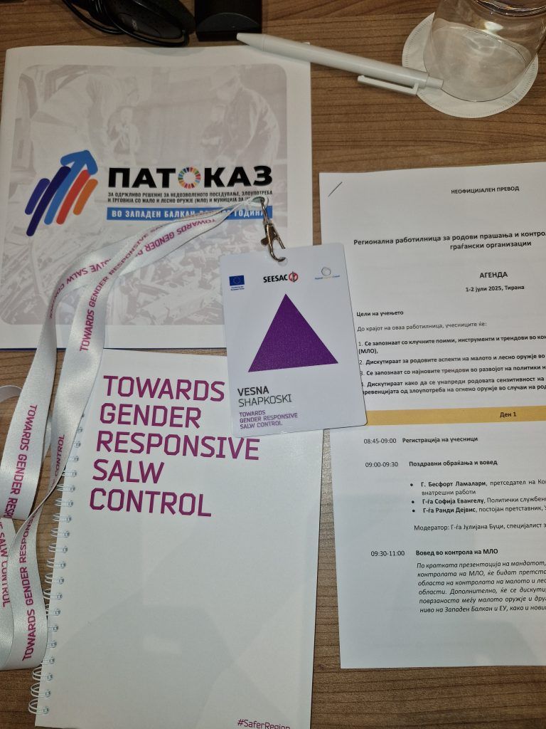Препознавајќи ја клучната улога на женските организации во застапувањето за одржување на мирот, разоружувањето и борбата против родовото и семејното насилство, SEESAC* собра претставници од 18 женски организации од Западен Балкан на работилница за род и мало и лесно оружје, одржана во Тирана на 1-2 јули 2025 година. Весна Шапкоски, извршна директорка на СТАНИЦА ПЕТ учествуваше на работилницата, заедно со уште две претставнички од граѓански организации од Северна Македонија.
